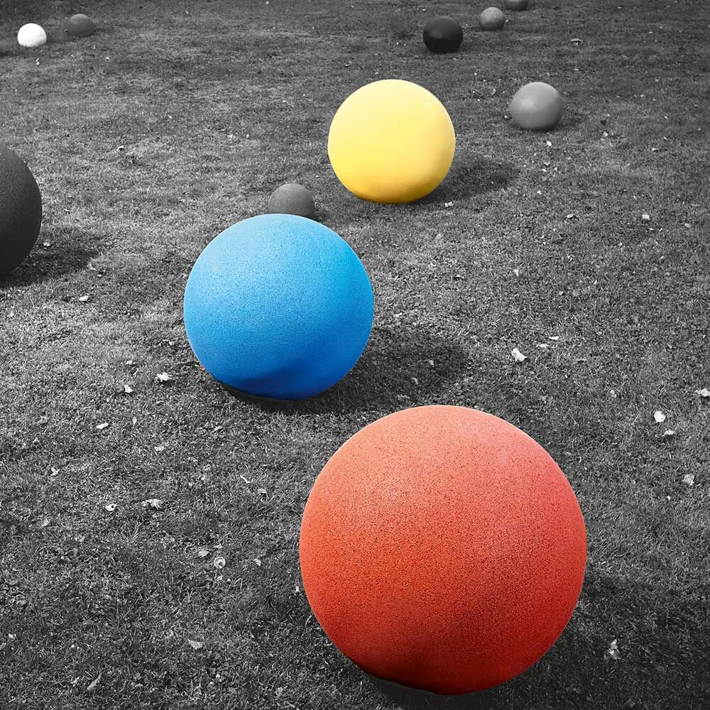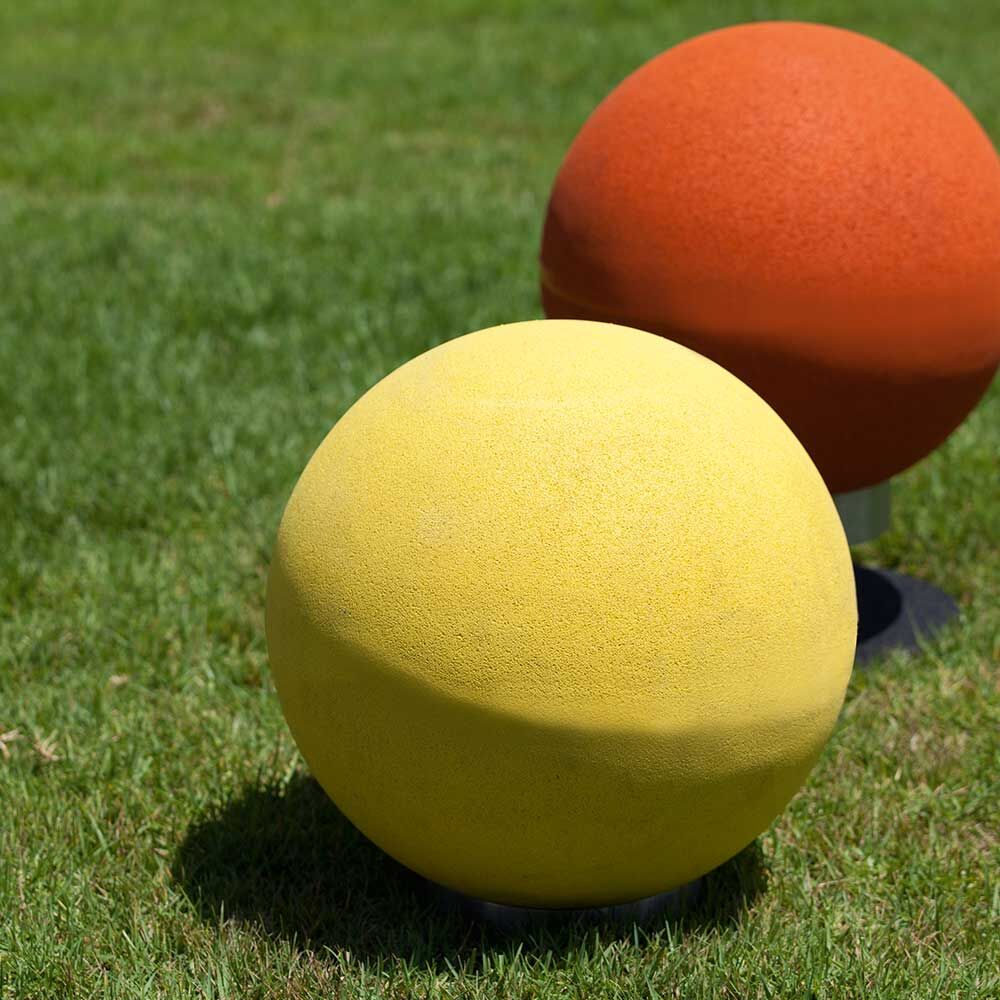3D prvek Koule z pryžového granulátu EPDM slouží jako designový prvek a zároveň jako sedadlo.