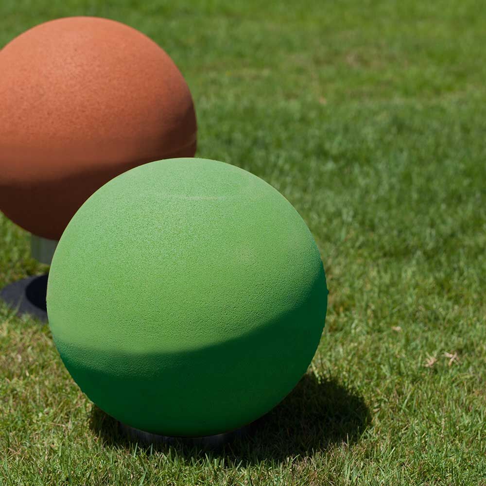 3D prvek Koule z čistého pryžového granulátu slouží jako designový prvek a zároveň jako sedadlo.