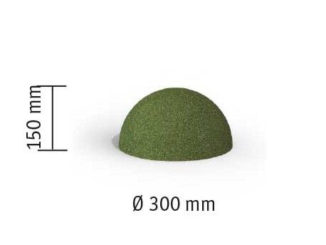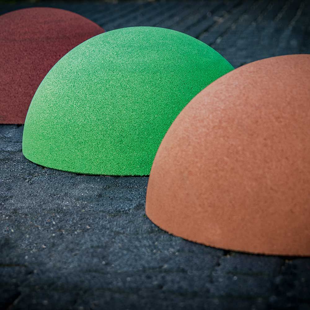 3D prvek Polokoule z čistého pryžového granulátu slouží jako designový prvek a zároveň jako sedadlo.
