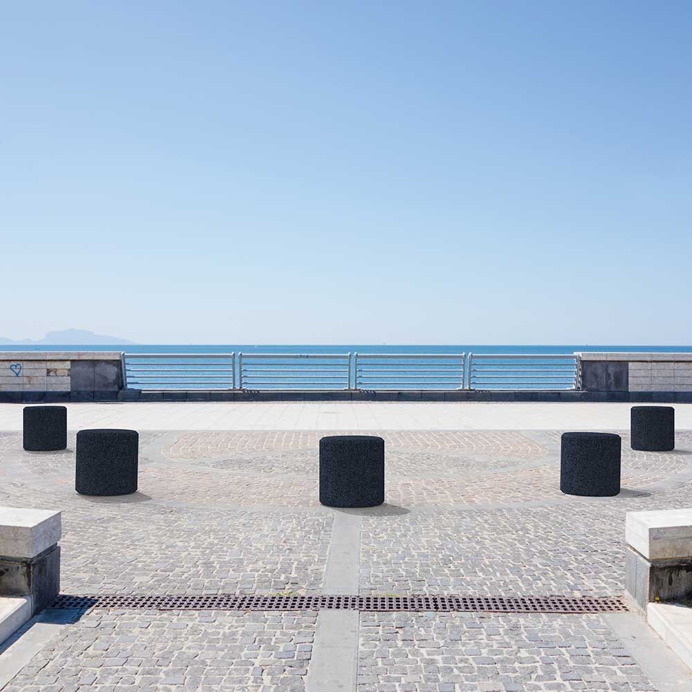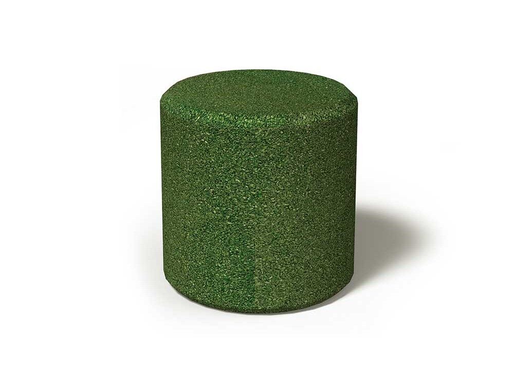 3D prvek Válec z čistého pryžového granulátu slouží jako designový prvek a zároveň jako sedadlo.