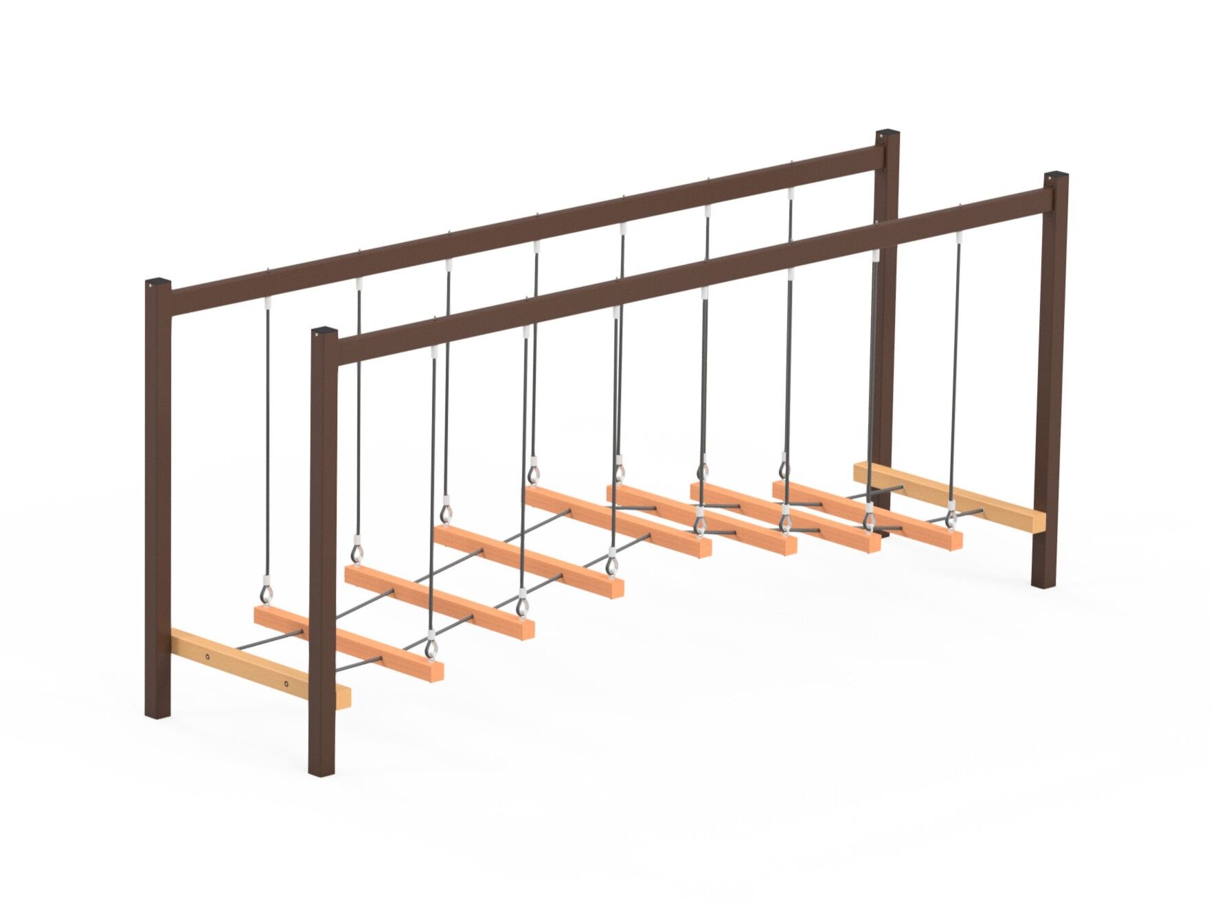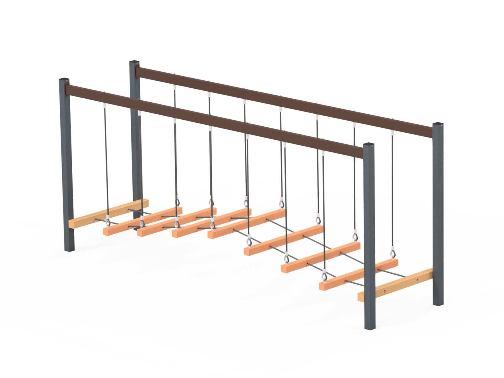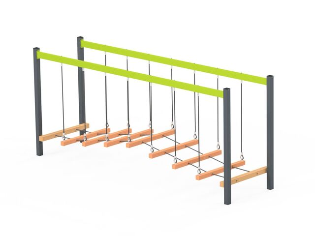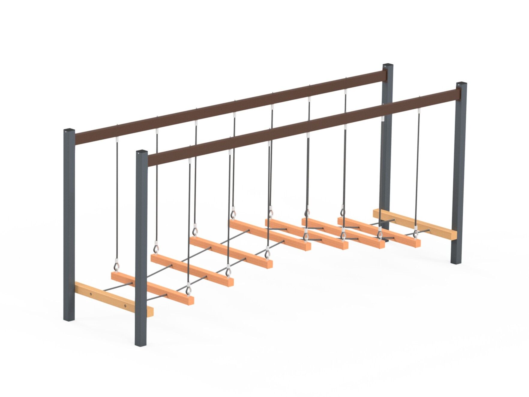 Pohyblivá konstrukce vytváří nestabilní povrch, který při přechodu nutí děti aktivně zapojovat rovnováhu, koordinaci a stabilitu těla. Prvek podporuje rozvoj motoriky a zároveň nabízí zábavnou výzvu při překonávání překážky. Most je vyroben z pozinkované oceli, která je opatřena práškovou barvou. Lana jsou vyrobena z polypropylenu s ocelovým jádrem.