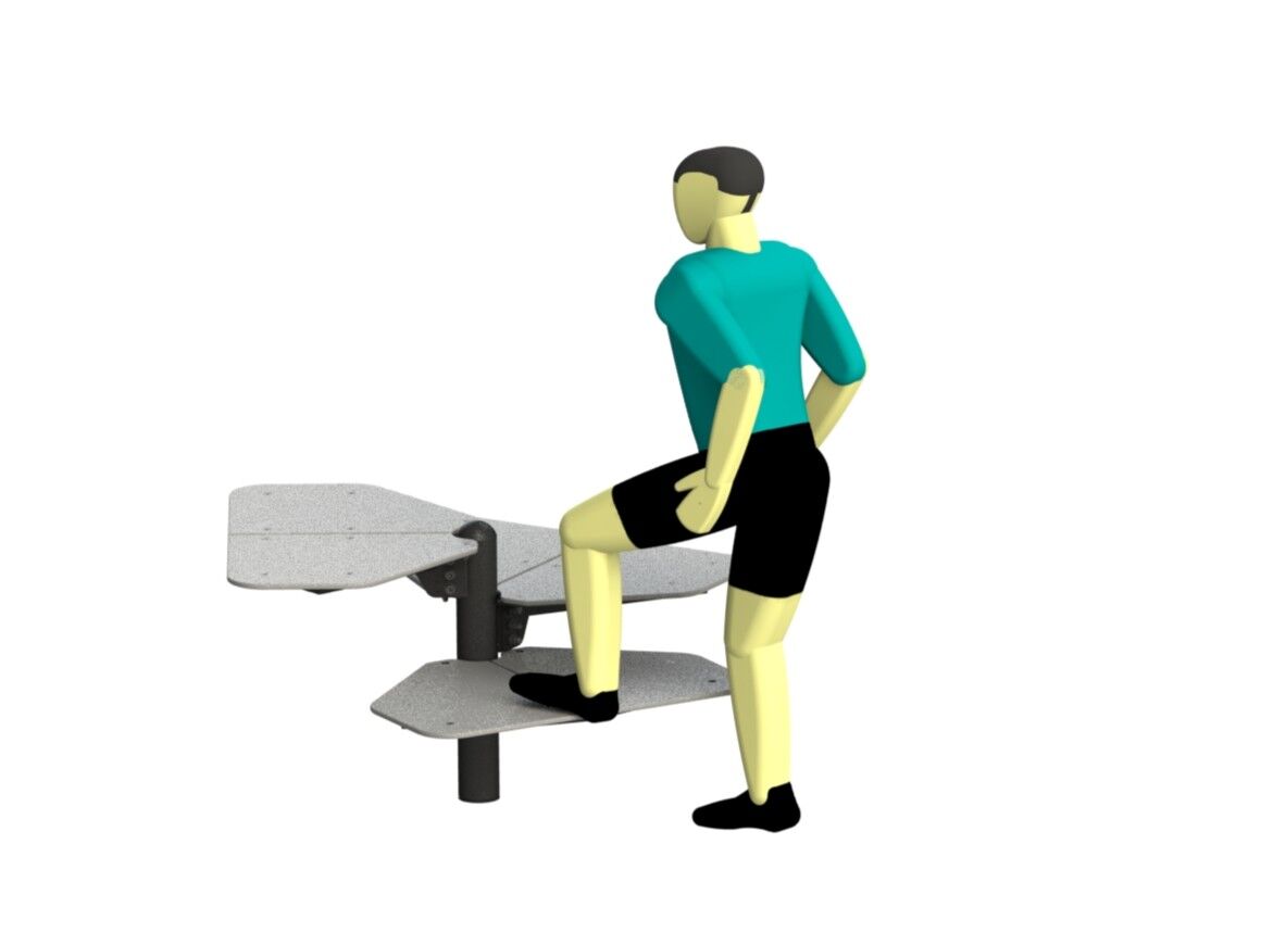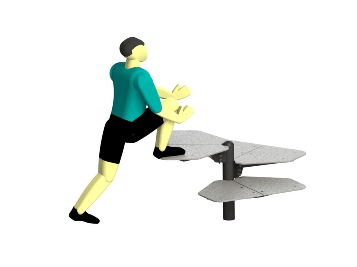 Balanční nášlap je outdoor fitness prvek navržený pro funkční trénink, který uživatelům umožňuje cvičení zahrnující: skoky na různé výšky, výstupy a step‑ups – zapojení nohou a středu těla, koordinaci – přechody mezi jednotlivými úrovněmi. Tento prvek je vhodný jak pro veřejné venkovní fitness parky a workout zóny, tak pro samostatné funkční tréninkové stanoviště. Vyrobeno z materiálů odolných vůči povětrnostním vlivům s minimální údržbou. Prvek je navržen tak, aby splňoval normy pro venkovní hřiště a workouty.