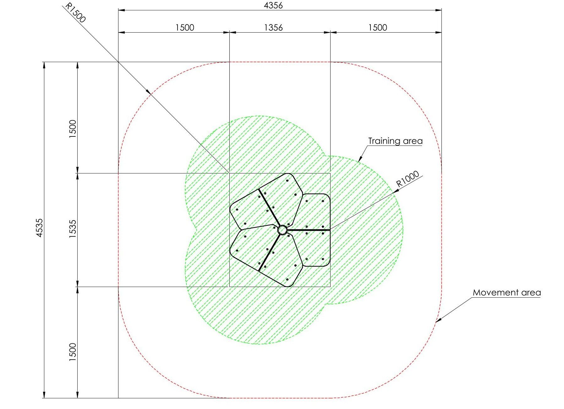 | Dopadová plocha (d x š) | 453,5 x 435,6 cm |