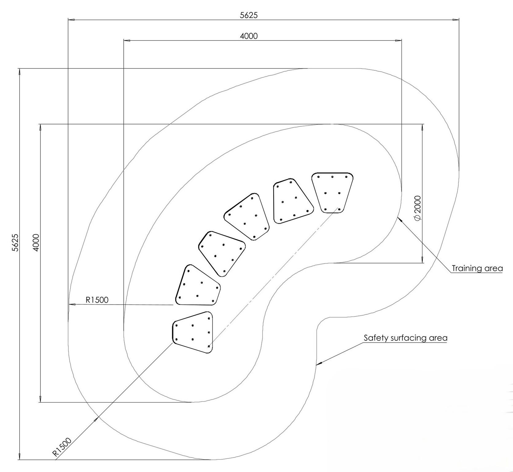 Umožňuje uživatelům přecházet mezi jednotlivými body, skákat, přenášet váhu a trénovat rovnováhu. Zvyšuje výdrž a koordinaci díky práci s vlastní vahou při rychlých nebo kontrolovaných pohybech. Balanční nášlapy jsou určené pro outdoor workout parky, sportovní areály a dětská hřiště jako součást větších překážkových nebo funkčních tréninkových sestav.