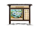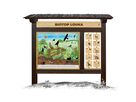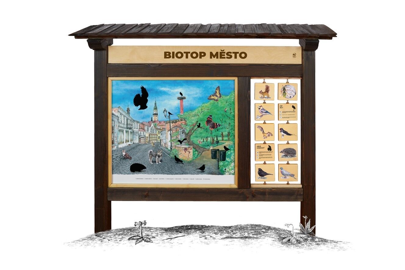 Biotop zobrazuje typické prostředí daného ekosystému a jejich obyvatele. Některá zvířata jsou zobrazena v siluetách a úkolem je poznat a najít majitele siluety na otočných tabulkách. Z druhé strany tabulky je možné ověřit správné řešení a dozvědět se zajímavost o živočichovi. Obyvatelé biotopu jsou očíslovaní a pojmenovaní ve spodní části desky. 10 otočných tabulek má velikost 15 × 13 cm. Tabule je natištěná na desce z Dibondu, a je tak odolná proti korozi a lépe odolává vandalismu (graffiti apod.) K výrobě konstrukce jsme použili masivní smrkový KVH hranol, který je mnohem odolnější. Střecha je šindelová. Dřevo ze kterého jsou prvky vyrobeny má ekologický certifikát PEFC.
