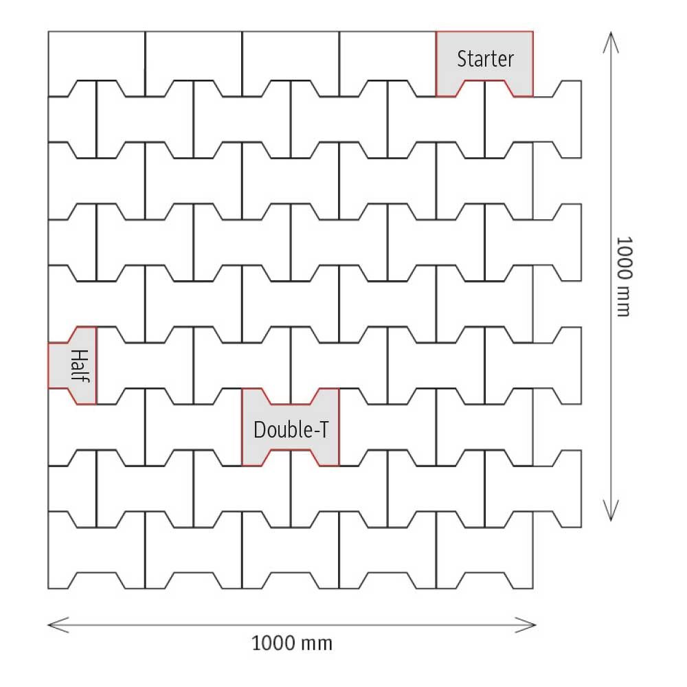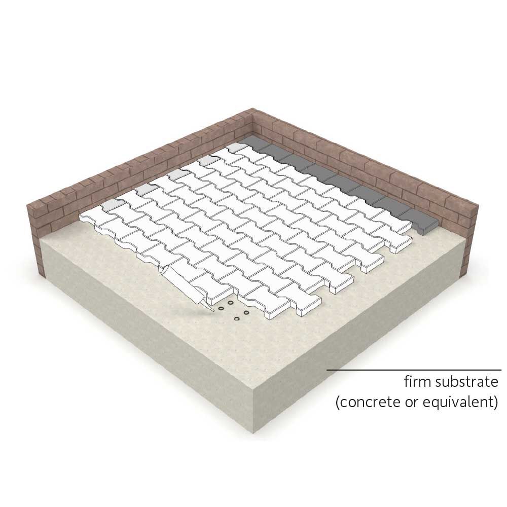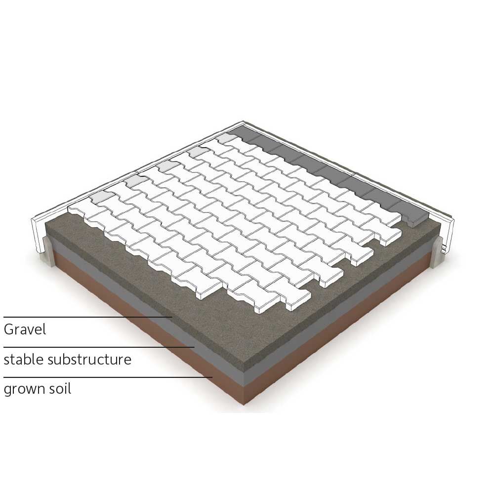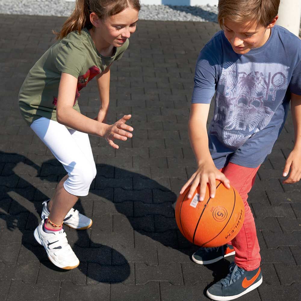 Dopadová plocha o tloušťce 4,3 cm vyrobená z čistého pryžového granulátu.