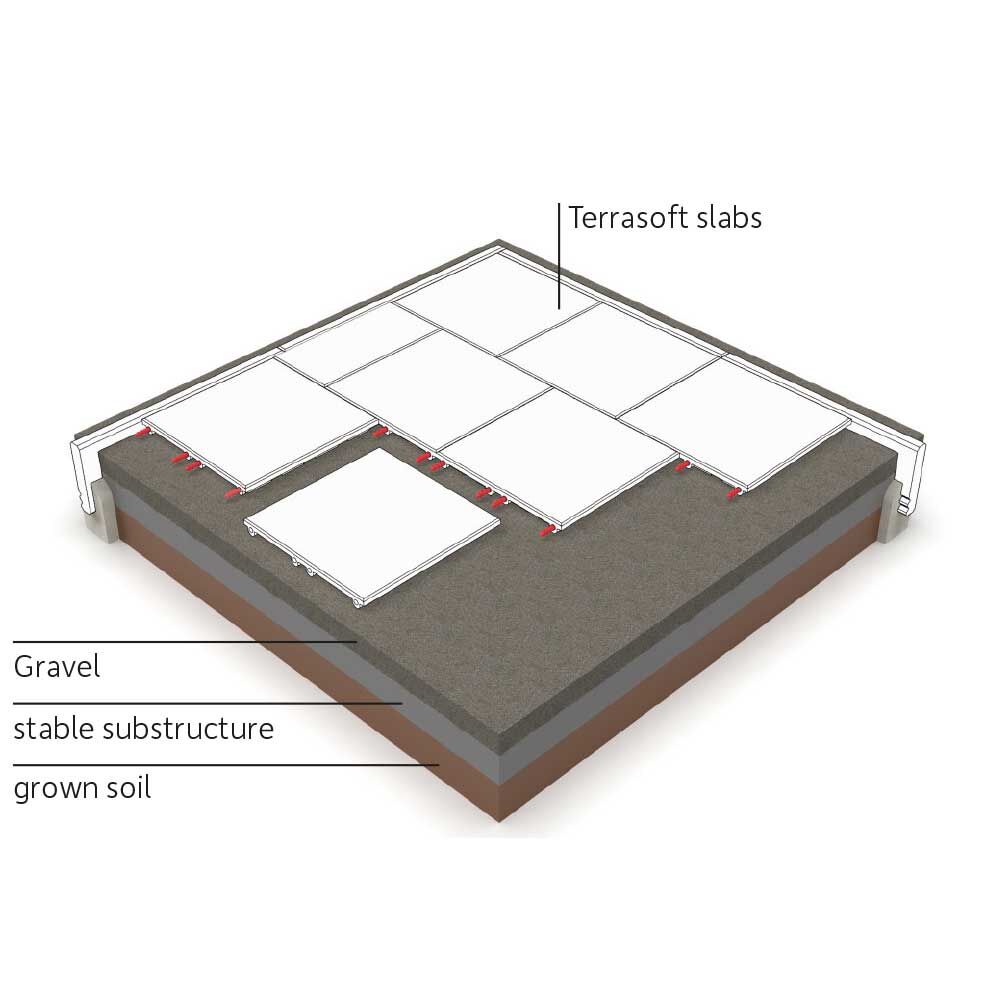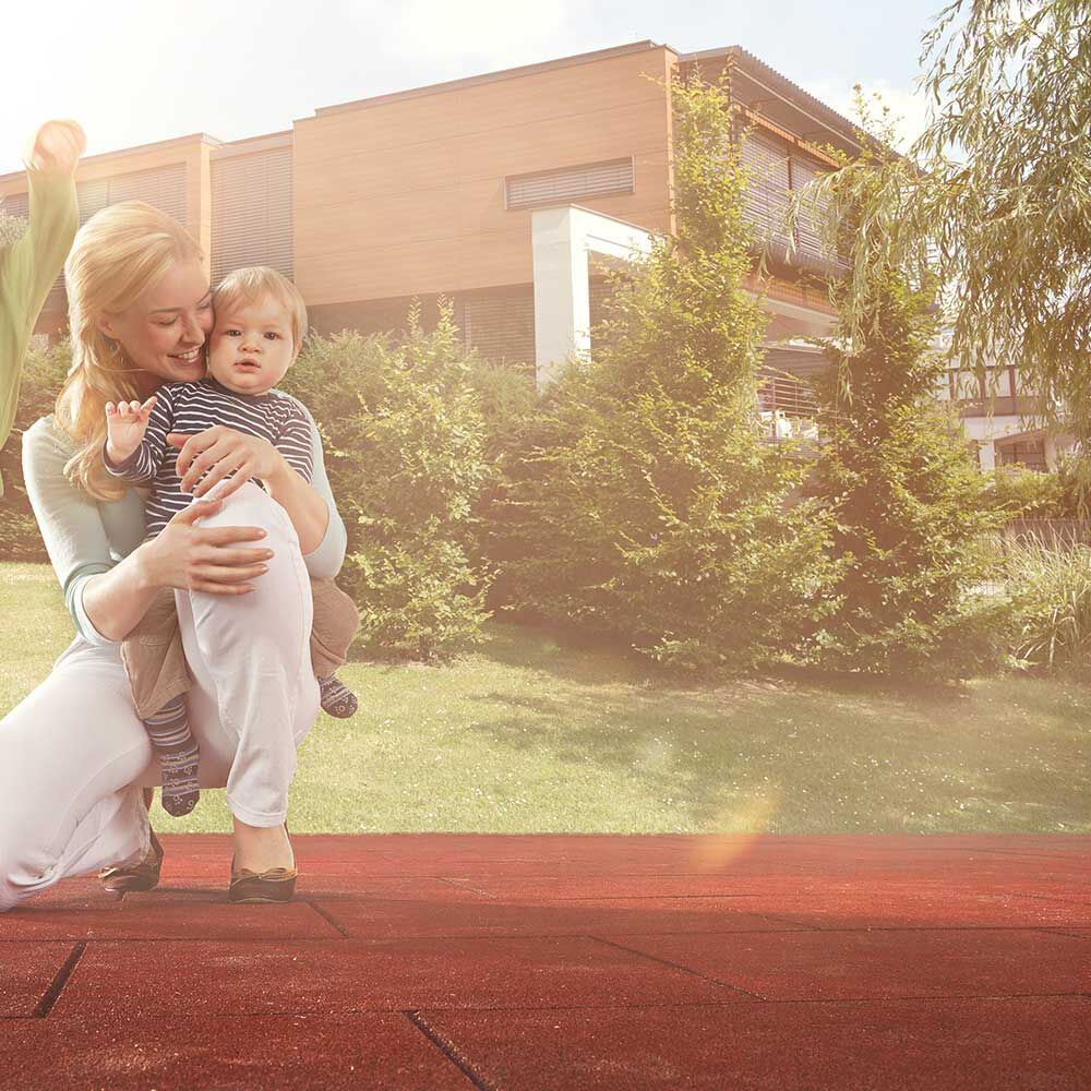 Dopadová plocha o tloušťce 4,5 cm vyrobená z čistého pryžového granulátu.