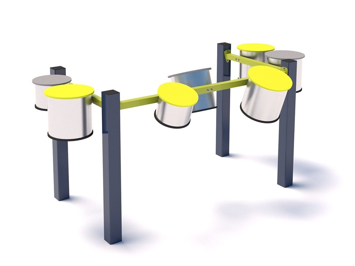 Edukační prvky na hřišti nikdy nezůstanou opuštěné. Tyto prvky se stanou nejlepším výchozím bodem pro vytvoření originálního dětského hřiště v parku, ve školce či škole, u rekreačního domu nebo i na vlastní zahradě. Konstrukce prvku je vyrobena z pozinkované a práškově lakované oceli, která je odolná vůči povětrnostním vlivům. Bubny jsou vyrobeny z ocelového plechu a HDPE.