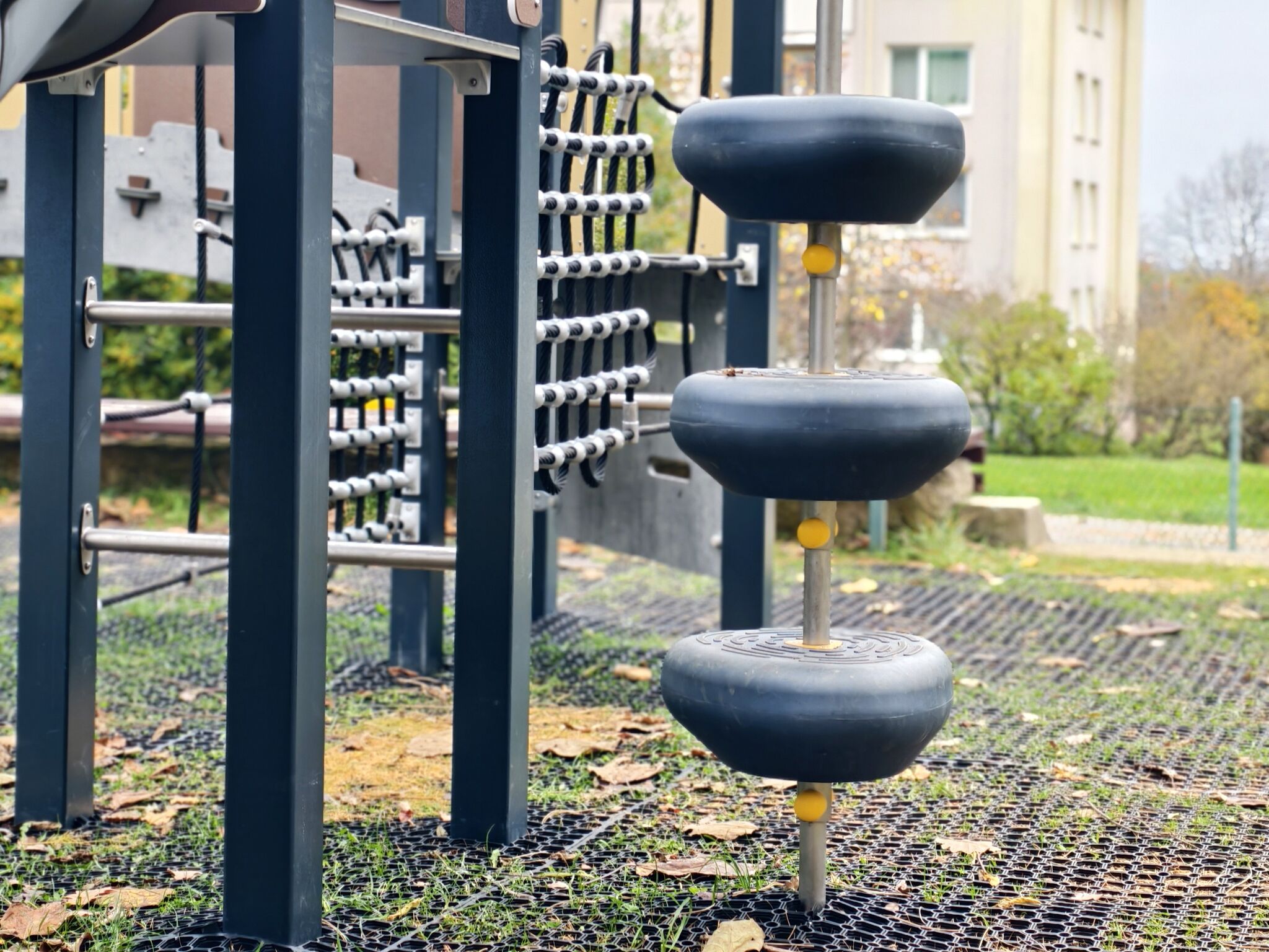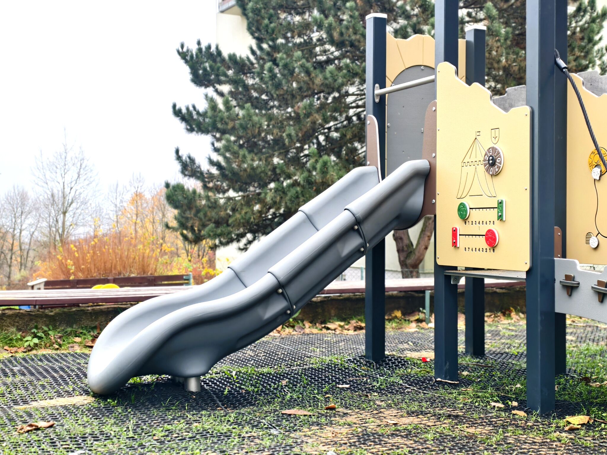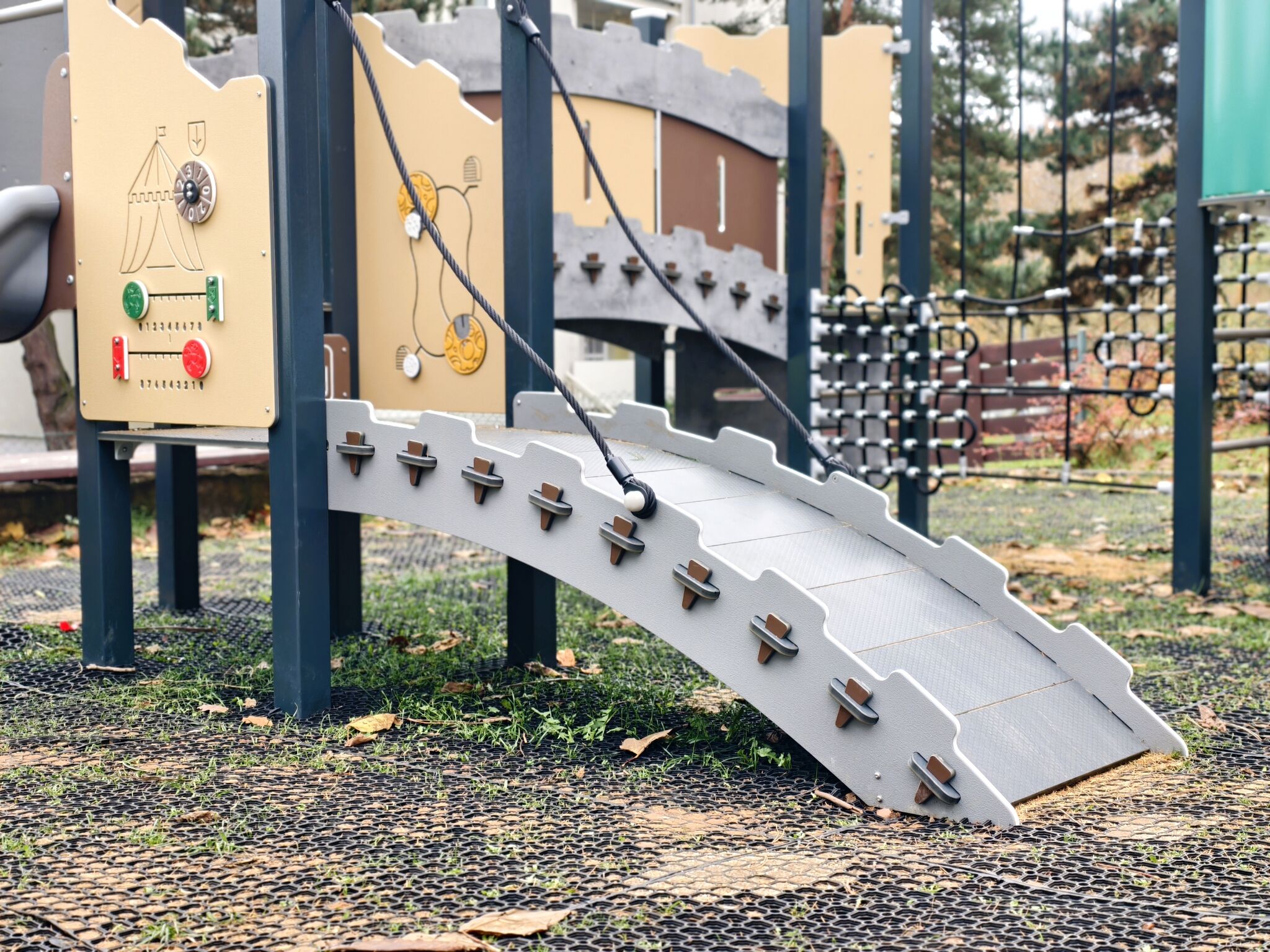 3x věž, 1x střecha, 1x cimbuří, 2x skluzavka, 1x most, 3x modul na tyči, 2x lanová síť, 1x šikmý most, edukační prvky, 1x lezecká stěna