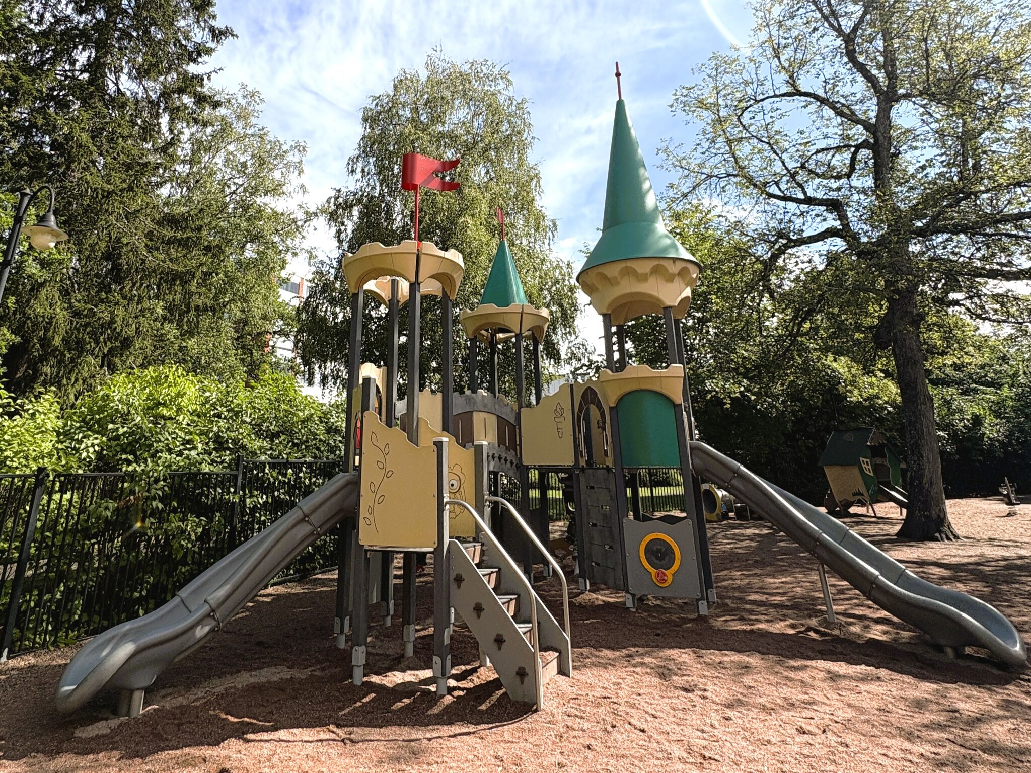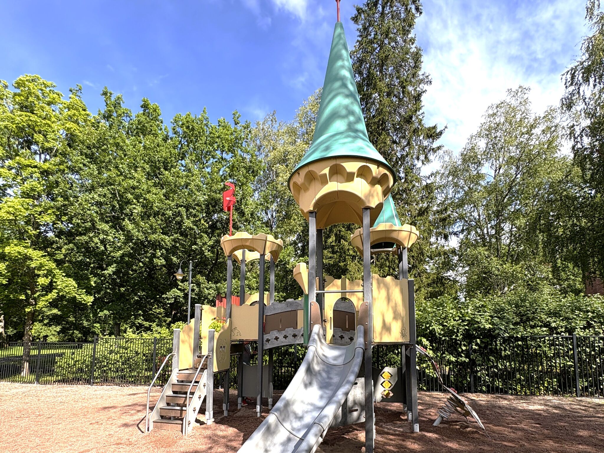 3x věž, 2x střecha, 1x cimbuří, 2x skluzavka, 1x atypická lezecká sestava, 1x schody, 1x lezecká stěna, edukační prvky, 2x most