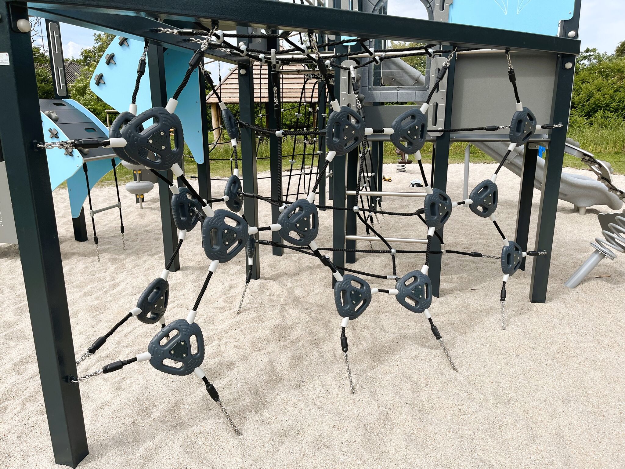 4x věž, 2x střecha, 1x skluzavka, 1x atypická lezecká stěna, 1x lanové bludiště, 2x lezecká stěna, 1x lanový most, 4x lanový žebřík, 1x lanová síť, 1x šplhací tyč, 3x modul na tyči, edukační prvky