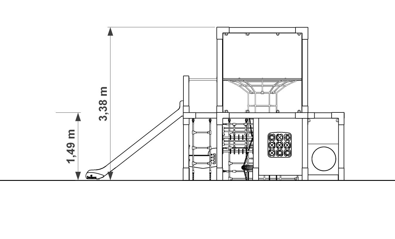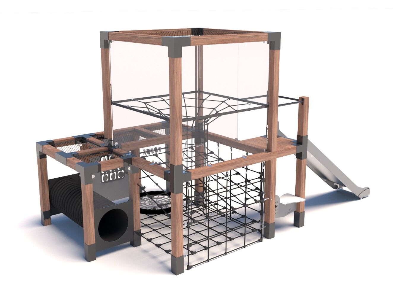 1x skluzavka, 1x lanový žebřík, 2x horizontální lanová síť, 2x vertikální lanová síť, 1x tunel, 1x počítadlo, 1x hnízdo, 1x lanový trychtýř, 1x piškvorky, 4x bočnice z polykarbonátu, 4x horizontální lanová mříž
