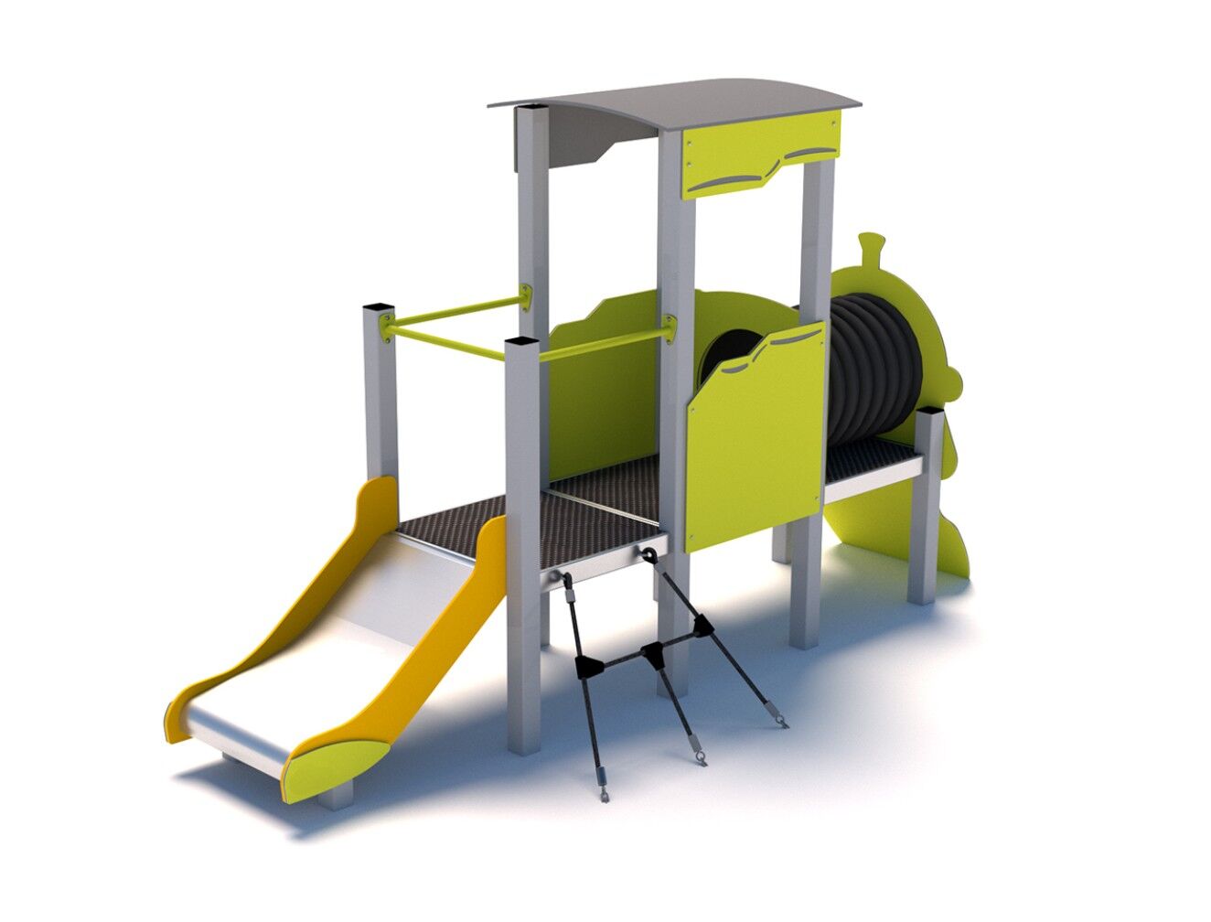 1x střecha, 1x skluzavka, 1x lezecká stěna, 1x lanový výlez, 1x tunel, bočnice