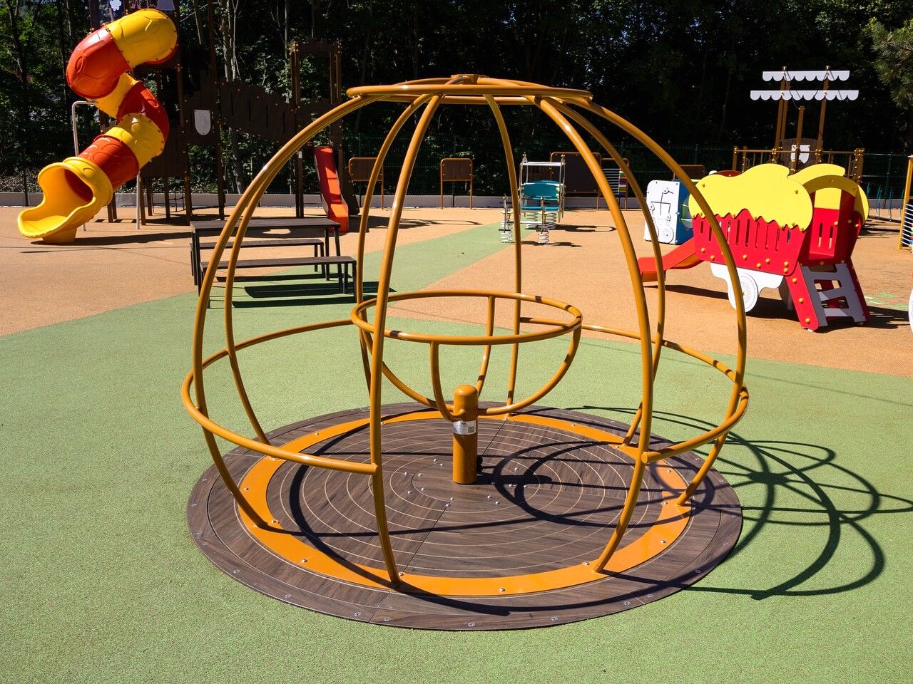 Konstrukce kolotoče je vyrobena z pozinkované a práškově lakované oceli. Sedáky a podlaha jsou vyrobeny z ekologického materiálu HPL, který je odolný vůči UV záření, netoxický, recyklovatelný a nerozbitný. Nehrozí, že by se děti poranily o ostré hrany nebo úlomky.