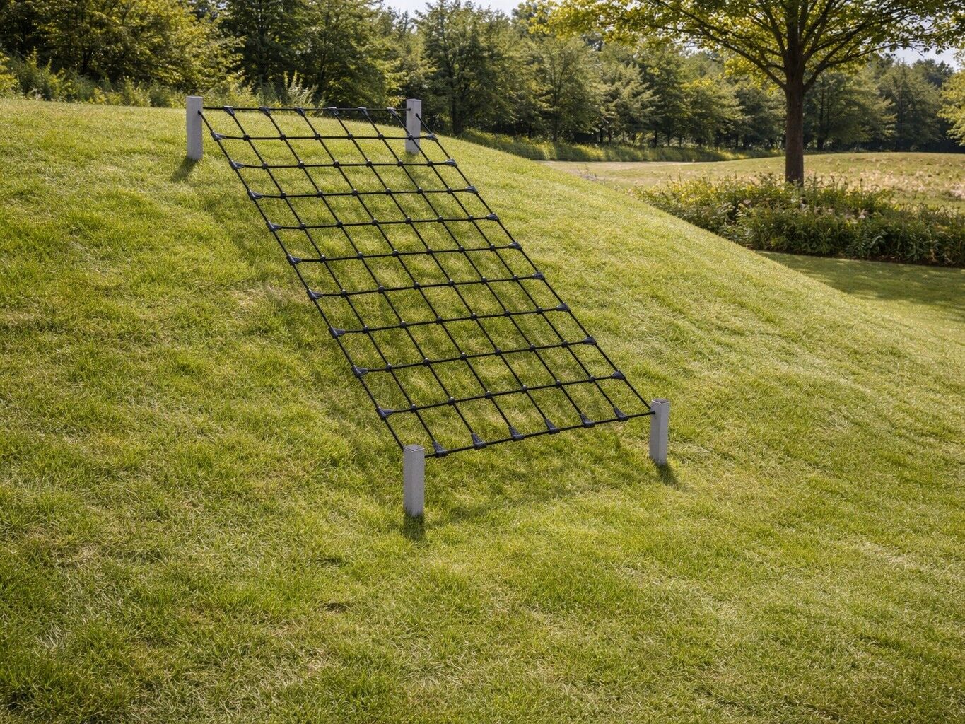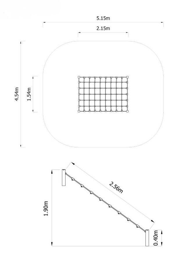 Šikmá lanová síť je uchycena mezi čtyřmi stabilními nosnými sloupky. Konstrukce vytváří plynulý přechod mezi spodní a vrchní úrovní terénu, čímž přirozeně motivuje děti k lezení. Lanová síť je tvořena pevnými lany uspořádanými do pravidelné mřížky, která zajišťuje jistý úchop i došlap a umožňuje bezpečný a plynulý pohyb. Prvek rozvíjí zejména sílu, koordinaci, stabilitu a prostorovou orientaci a je vhodný jak jako samostatná herní aktivita, tak jako součást větších herních sestav.