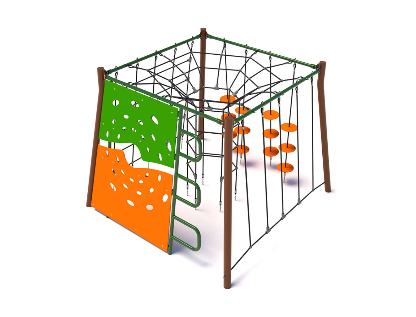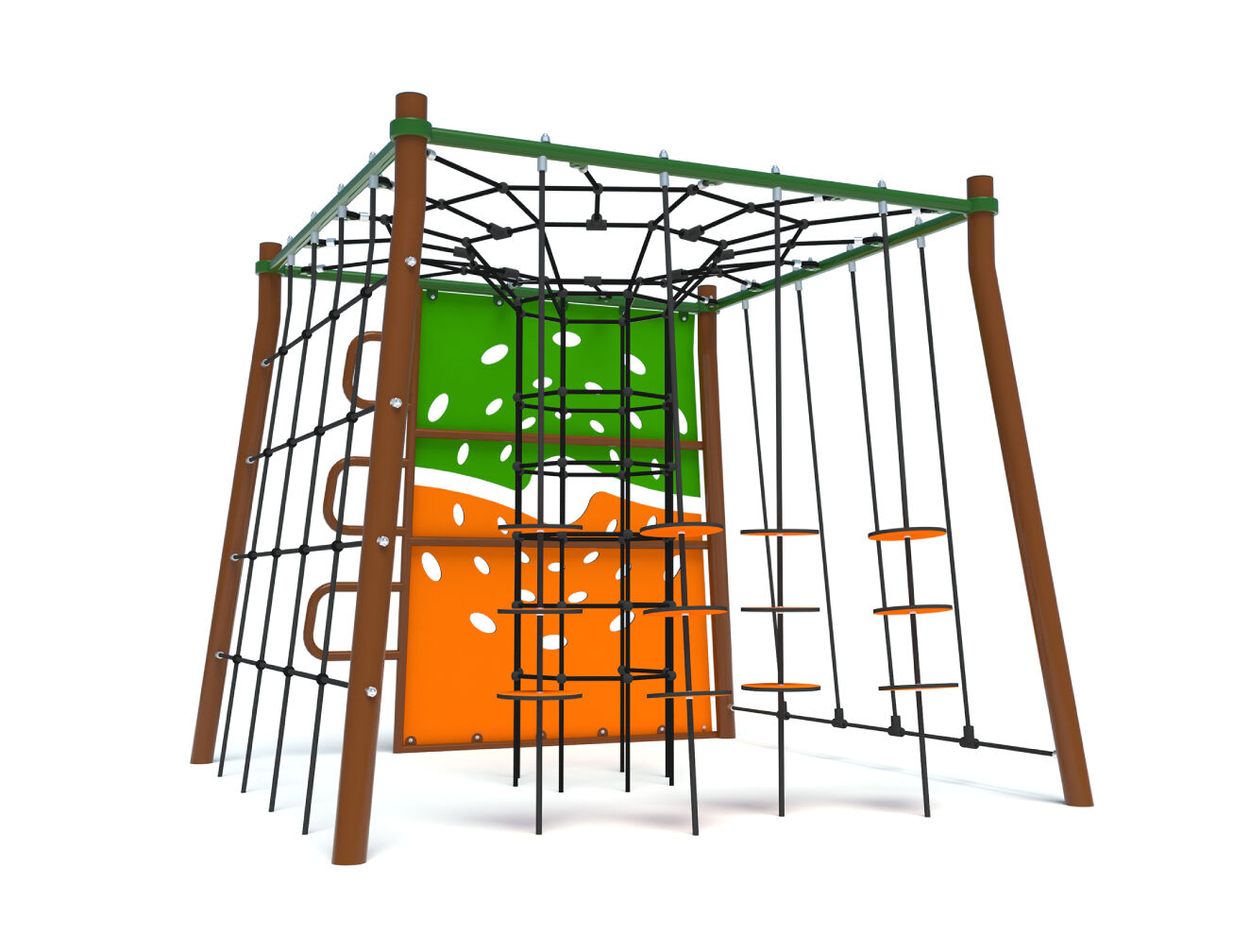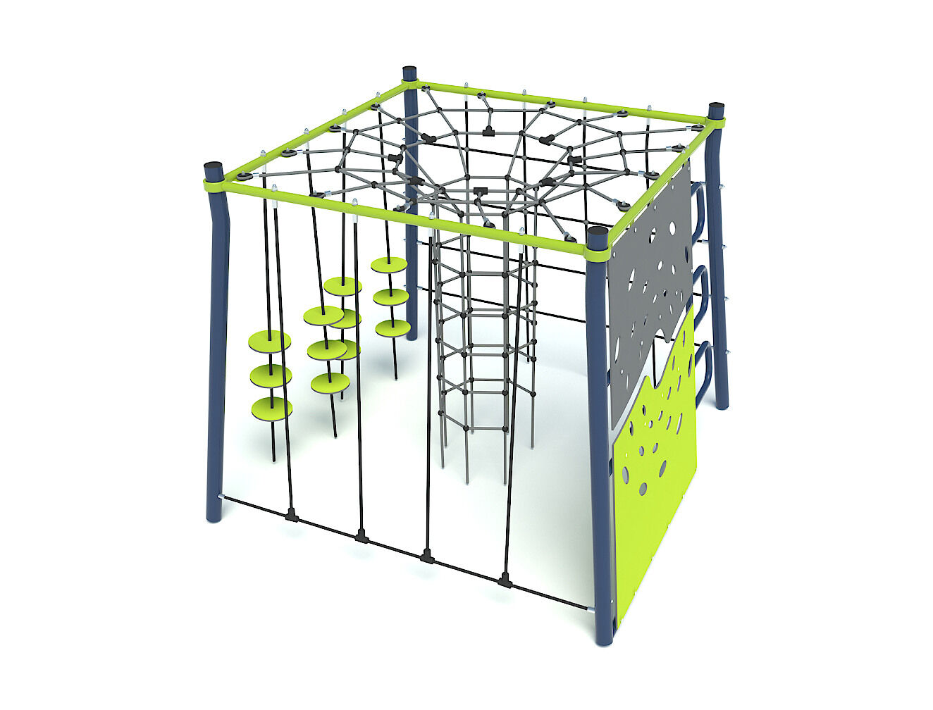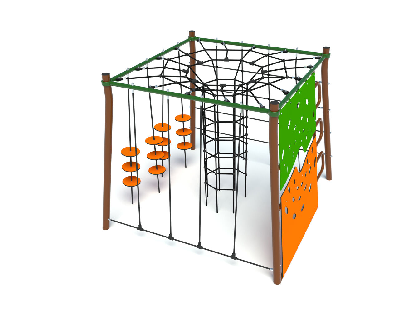 1x lezecká stěna, 1x kovový žebřík, 1x lanová síť, 4x lano s nášlapy, 4x lano na překračování, 1x lanový trychtýř