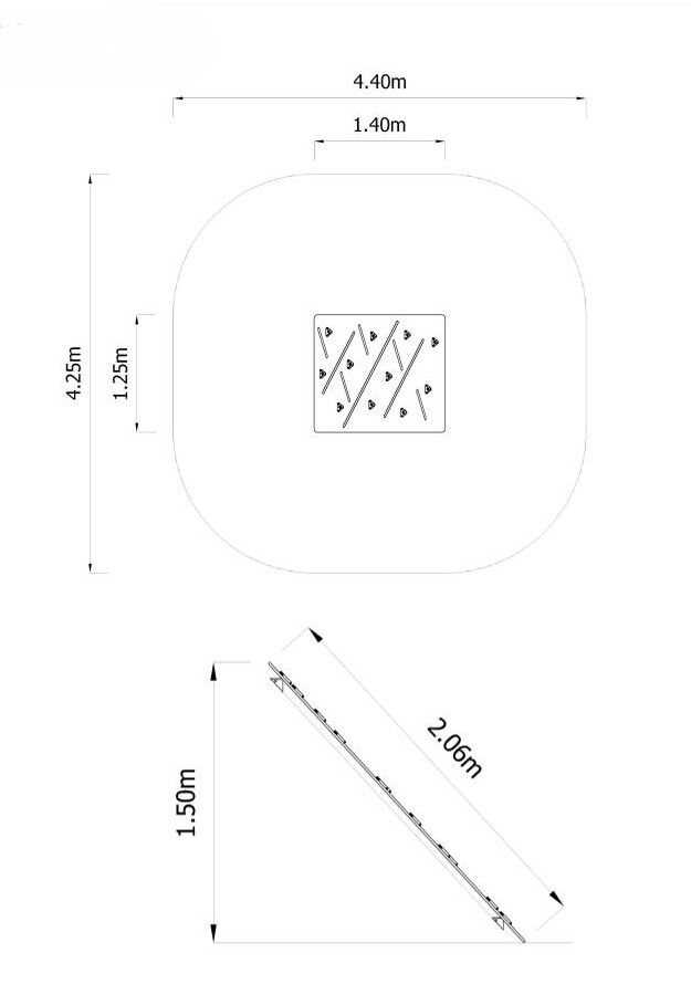 1x protiskluzová deska, 1x ocelová konstrukce, lezecké úchyty