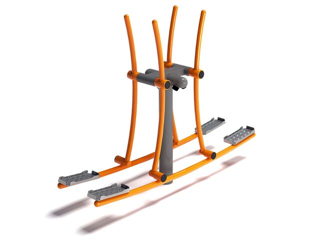 Použití: Postavte se na nášlapy a uchopte tyče. Pohybujte nohama dopředu a dozadu a současně střídavě táhněte a tlačte tyče rukama.