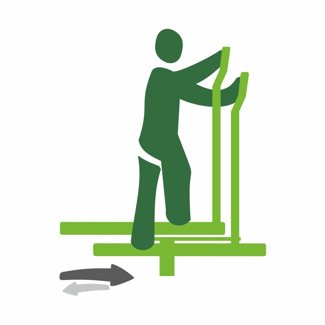 Způsob použití: Pevně uchopte rukojeť a postavte obě nohy na nášlapy. Pohybujte nohama dopředu a dozadu.