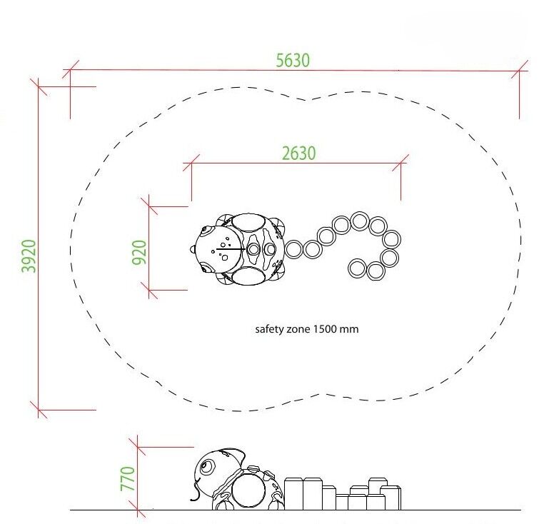 Dopadová plocha (d x š) 392 x 563 cm