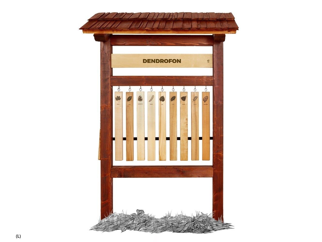 Na naučném prvku jsou jednotlivé lamely vyrobeny z 9 tuzemských dřevin (buku, dubu, lípy, břízy, smrku, borovice, javoru, modřínu a jasanu). Na každé je vždy potisk listu a plodu. Rozměry konstrukce vel. (M) jsou přizpůsobené dětem předškolního věku a dětem ZŠ 1. stupně. Součástí prvku je kotvící materiál k zabetonování (ocelová kotva L, spojovací materiál, počet dle potřeb stojanu). Vyrobeno z masivního smrkového KVH hranolu, voděodolné překližky a 9 druhů dřevin (lamely). Střecha je šindelová. Barvu nátěru konstrukce prvku si můžete zvolit dle vzorníku který na přání zasíláme v elektronické podobě. Autorem kreseb jsou čeští ilustrátoři, obrázky jsou chráněny autorskými právy. Prvky jsou vyrobeny z ekologicky certifikovaného dřeva PEFC.