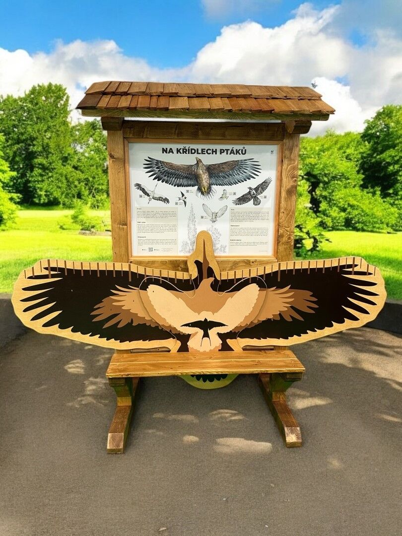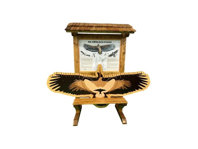 Naučný prvek vám odhalí, jaký pták má v ČR největší rozpětí křídel a jaký naopak nejmenší. Na prvku si budete moci, díky maketám, zkusit poměřit své rozpětí s vybranými druhy ptáků: orel mořský, čáp bílý, krkavec velký, sova pálená a vlaštovka obecná. Na tabuli najdete zajímavé informace o dalších ptačích druzích a jejich rozpětí. Součástí prvku je kotvící materiál k zabetonování (ocelová kotva L, spojovací materiál, počet dle potřeb stojanu). Vyrobeno z masivního smrkového KVH hranolu a voděodolné překližky. Tabule je natištěná na desce z Dibondu a střecha je šindelová. Barvu nátěru konstrukce prvku si můžete zvolit dle vzorníku, který na přání zasíláme v elektronické podobě. Autorem kreseb jsou čeští ilustrátoři, obrázky jsou chráněny autorskými právy. Prvky jsou vyrobeny z ekologicky certifikovaného dřeva PEFC.