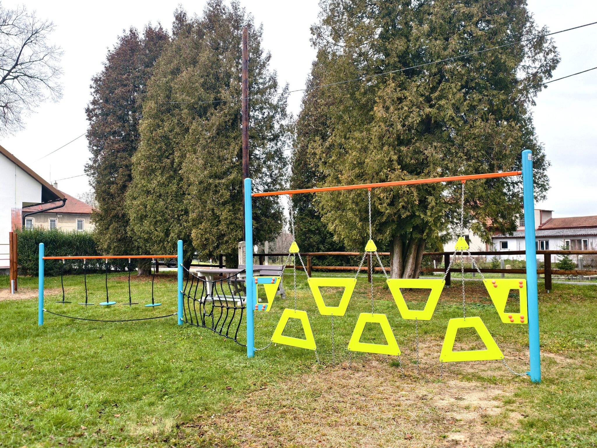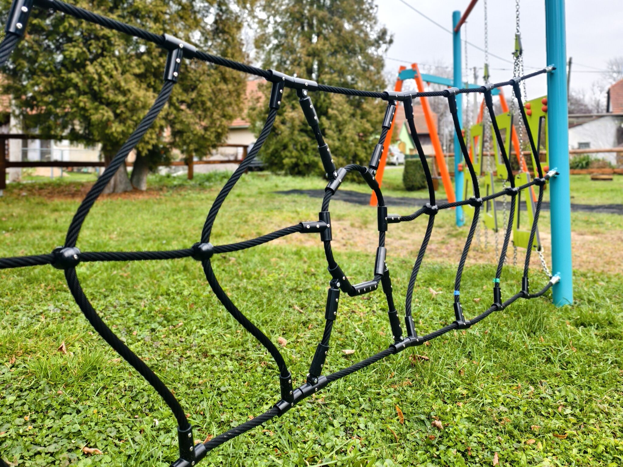 Herní prvek je vyroben z pozinkované oceli s kvalitním práškovým lakováním, spoje jsou z nerezové oceli a jsou kryty plastovými krytkami pro zvýšení bezpečnosti a odolnosti spojů. Lana jsou vyrobena z polyesterových vláken s ocelovým jádrem, které jsou navinuty kolem středu. Tato konstrukce lana zvyšuje jeho pevnost a odolnost vůči mechanickému namáhání. Samotný polyester má mnoho pozitivních vlastností. Je odolný vůči mikroorganismům, povětrnostním vlivům, rychle schne po dešti, je stálobarevný a vyznačuje se vysokou pevností.
