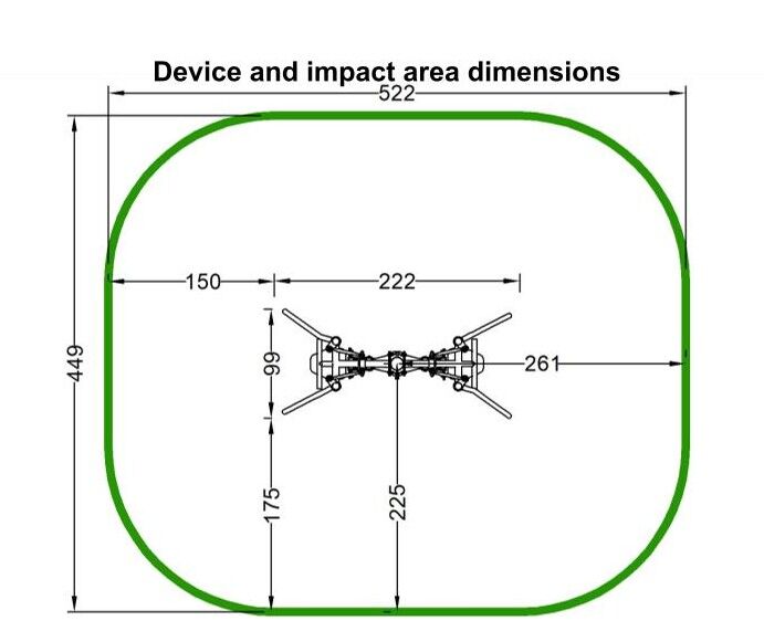| Dopadová plocha (d x š) | 522 x 449 cm |