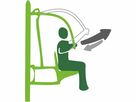 Použití: Posaďte se na sedadlo. Opřete se a uchopte rukama obě madla. Tlačte madla od sebe a vraťte se do výchozí polohy.