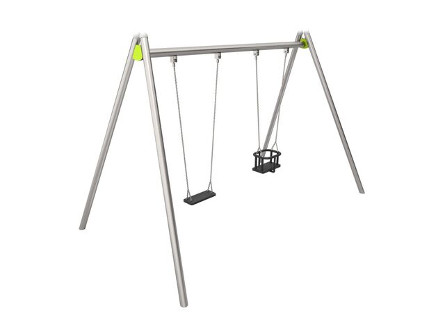 Sedadla mají hliníkovou konstrukci, jsou potažené měkkou EPDM pryží a zavěšené na 6 mm řetězích z nerezové oceli.