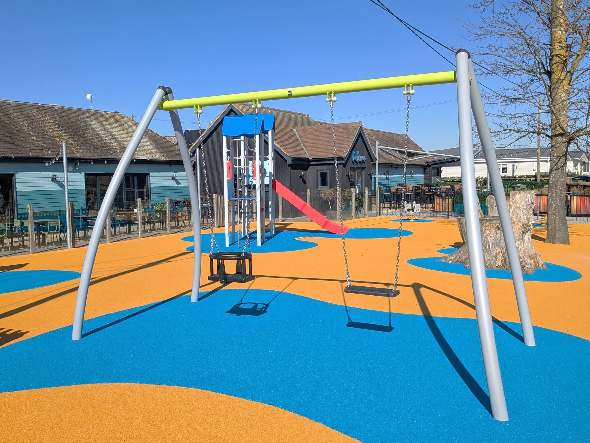 Sedadla mají hliníkovou konstrukci, jsou potažené měkkou EPDM pryží a zavěšené na 6 mm řetězích z nerezové oceli.
