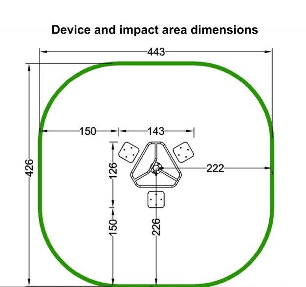 | Dopadová plocha (d x š) | 443 x 426 cm |