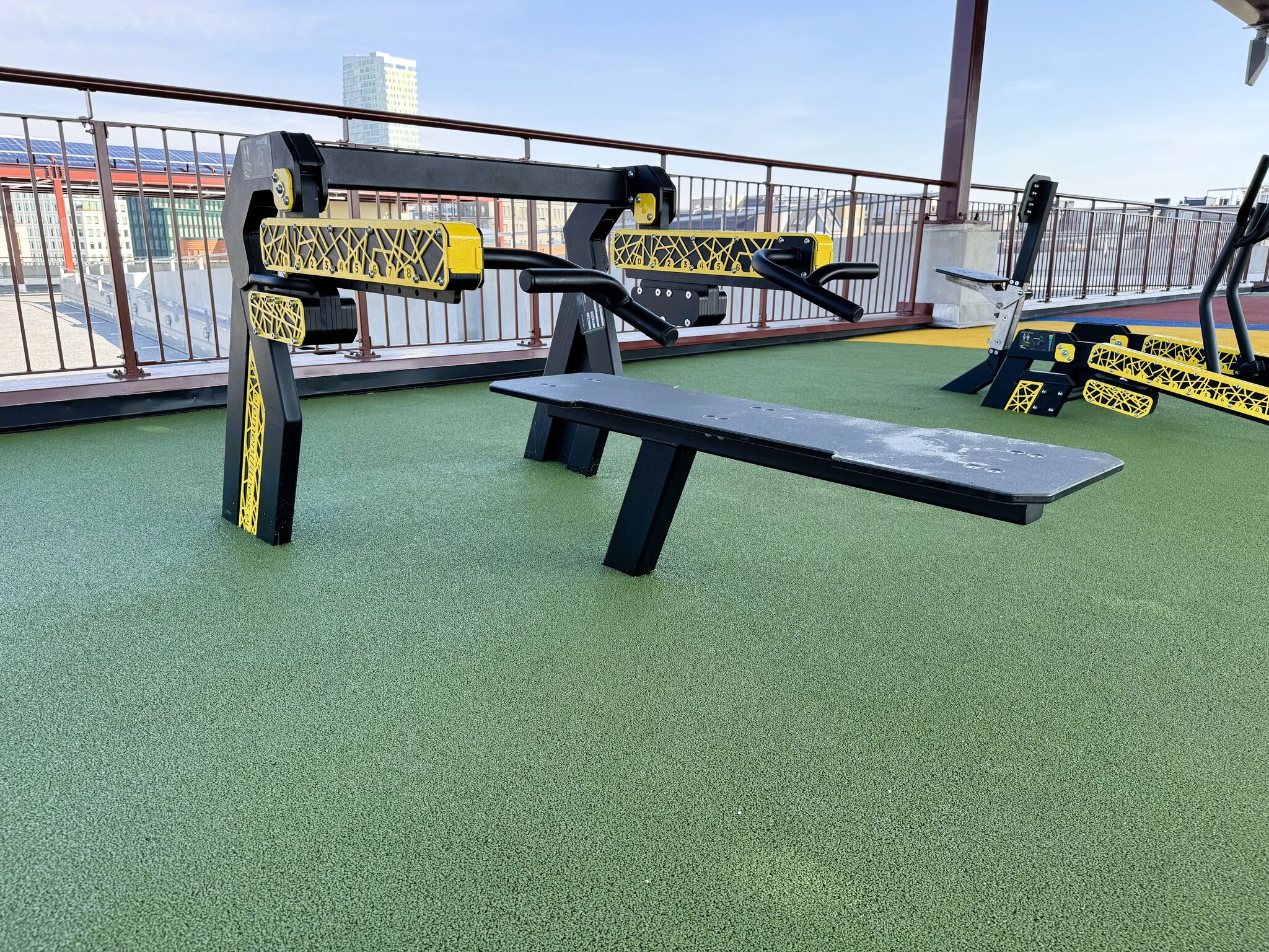 Venkovní posilovna Bench Press je určena pro komplexní trénink svalových partií venku bez nutnosti přenosných závaží nebo elektrického pohonu. Díky své konstrukci umožňuje bezpečné a efektivní cvičení s vlastní vahou nebo s využitím vestavěných odporových prvků. Cvičením na tomto zařízení posilujete horní i dolní část těla, střed těla i stabilizační svalstvo.