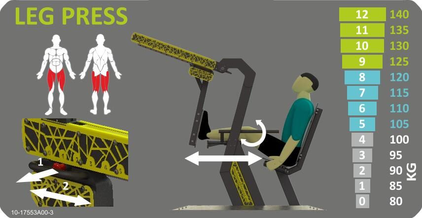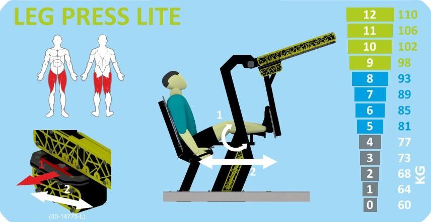 Konstrukce je navržena tak, aby splňovala standardy pro venkovní sportovní vybavení (EN16630). Venkovní posilovna Leg Press je profesionální outdoor fitness zařízení navržené pro komunitní prostory, veřejná prostranství, parky a rekreační zóny. Je součástí řady robustních venkovních posilovacích strojů, které jsou vyrobeny s důrazem na odolnost vůči povětrnostním vlivům, bezpečnost a dlouhodobou životnost. Univerzální tréninkový stroj vhodný pro širokou škálu uživatelů – od začátečníků až po zkušené sportovce. Dlouhodobá odolnost i při každodenním používání ve venkovním prostředí. Bezpečné a stabilní konstrukční prvky pro trénink bez rizika rychlého opotřebení.
