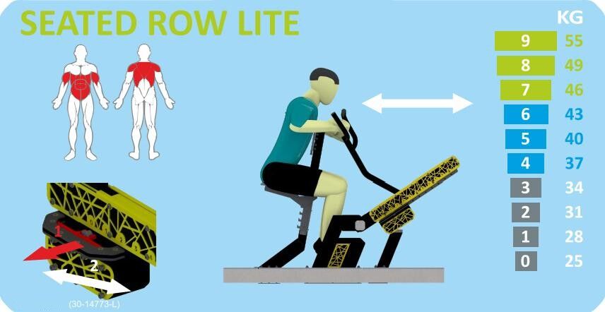Konstrukce je navržena tak, aby splňovala standardy pro venkovní sportovní vybavení (EN16630). Venkovní posilovna Seated Row je profesionální outdoor fitness zařízení navržené pro komunitní prostory, veřejná prostranství, parky a rekreační zóny. Je součástí řady robustních venkovních posilovacích strojů, které jsou vyrobeny s důrazem na odolnost vůči povětrnostním vlivům, bezpečnost a dlouhodobou životnost. Univerzální tréninkový stroj vhodný pro širokou škálu uživatelů – od začátečníků až po zkušené sportovce. Dlouhodobá odolnost i při každodenním používání ve venkovním prostředí. Bezpečné a stabilní konstrukční prvky pro trénink bez rizika rychlého opotřebení.