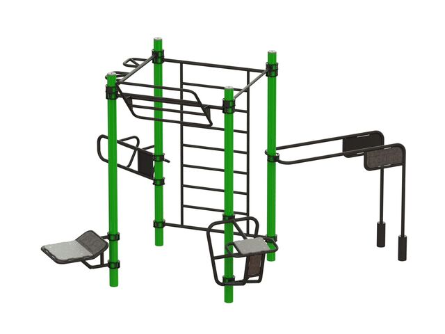Multifunkční tréninkový prvek navržený pro venkovní cvičení s vlastním tělem, vhodný pro veřejné workout parky a fit zóny, městské parky, školy, sportoviště, komunitní a rekreační prostory. Prvek je odolný vůči povětrnostním vlivům a splňuje evropské bezpečnostní normy. Použitý materiál je odolný vůči vlhkosti, slunečnímu záření a opotřebení, což snižuje potřebu časté údržby.